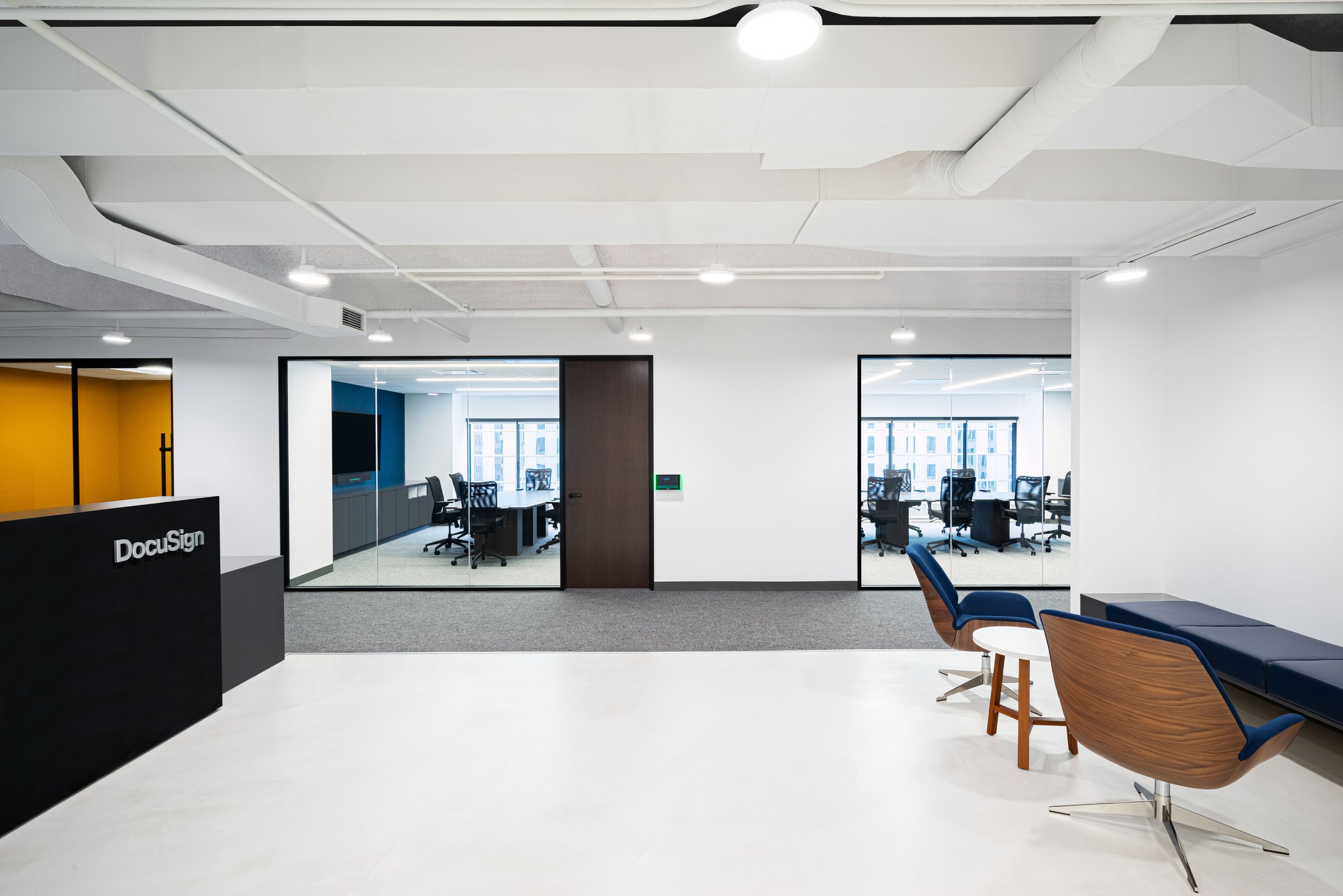 The interior buildout of DocuSign's office featured open office space, private offices, conferences rooms, and a café/lunchroom. This project had an extremely tight schedule due to lease terms and the work spanned across three floors at the building. The project was multi-phased, delivering the 11th and 12th floors first and finishing their 6th floor renovation after. Redmond collaborated with several of DocuSign’s national vendors plus their team was based in San Francisco, so communication was paramount to delivering this project on time (finished one week early) and under budget.